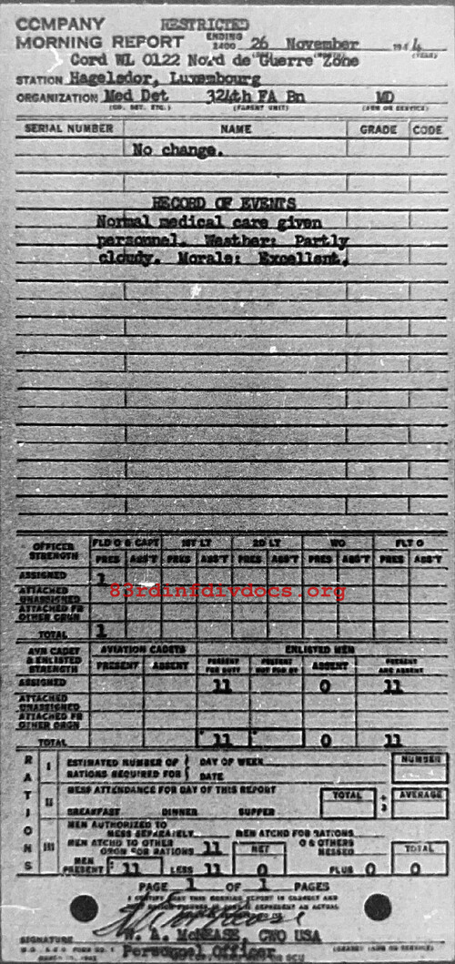 Normal medical care given personnel. Weather: Partly cloudy. Morale: Excellent.