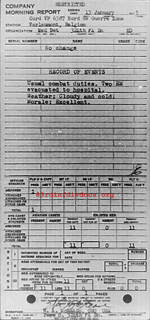 Morning report MEDDET/324FA for January 13, 1945