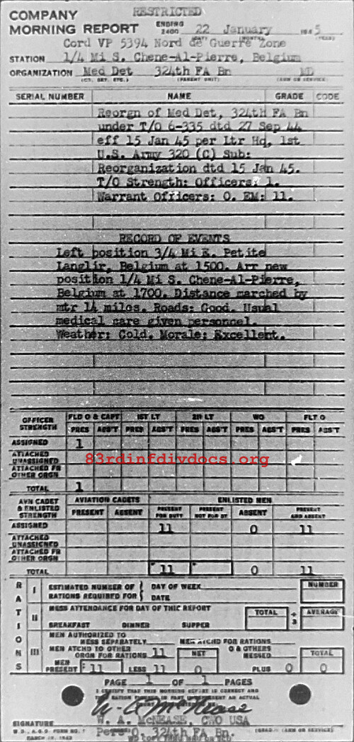 Morning report MEDDET/324FA for January 22, 1945