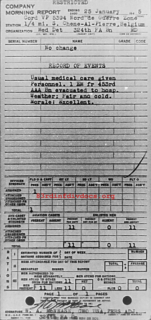Morning report MEDDET/324FA for January 25, 1945