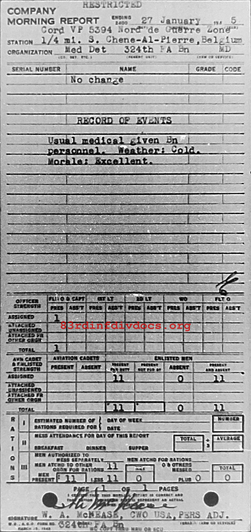 Usual medical given Bn personnel. Weather: Cold. Morale: Excellent.