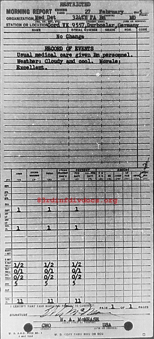 Morning report MEDDET/324FA for February 27, 1945