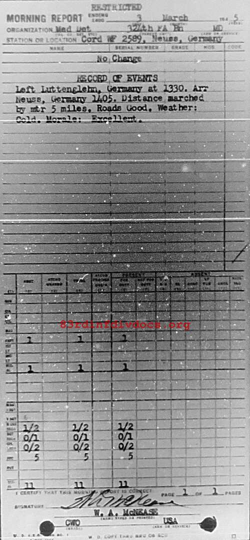 Morning report MEDDET/324FA for March 3, 1945