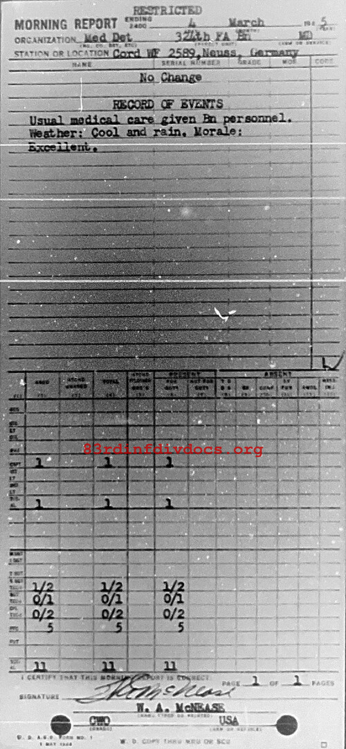 Morning report MEDDET/324FA for March 4, 1945