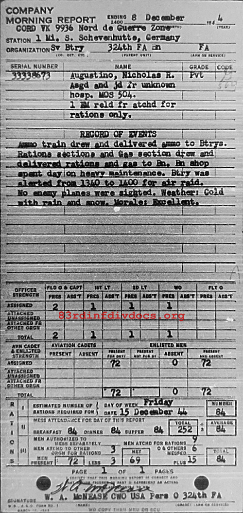 Morning report SERBTRY/324FA for December 8, 1944