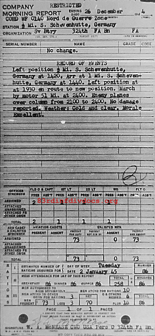 Morning report SERBTRY/324FA for December 26, 1944
