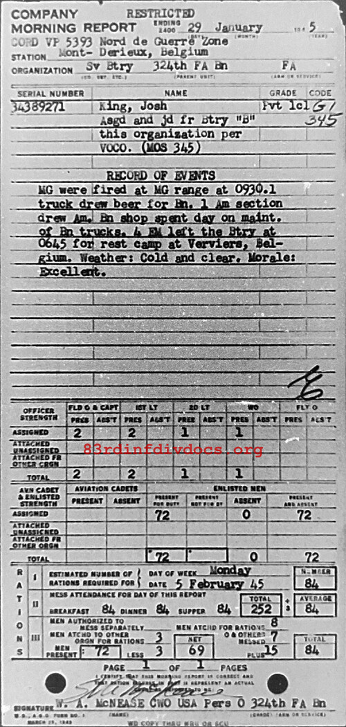 Morning report SERBTRY/324FA for January 29, 1945