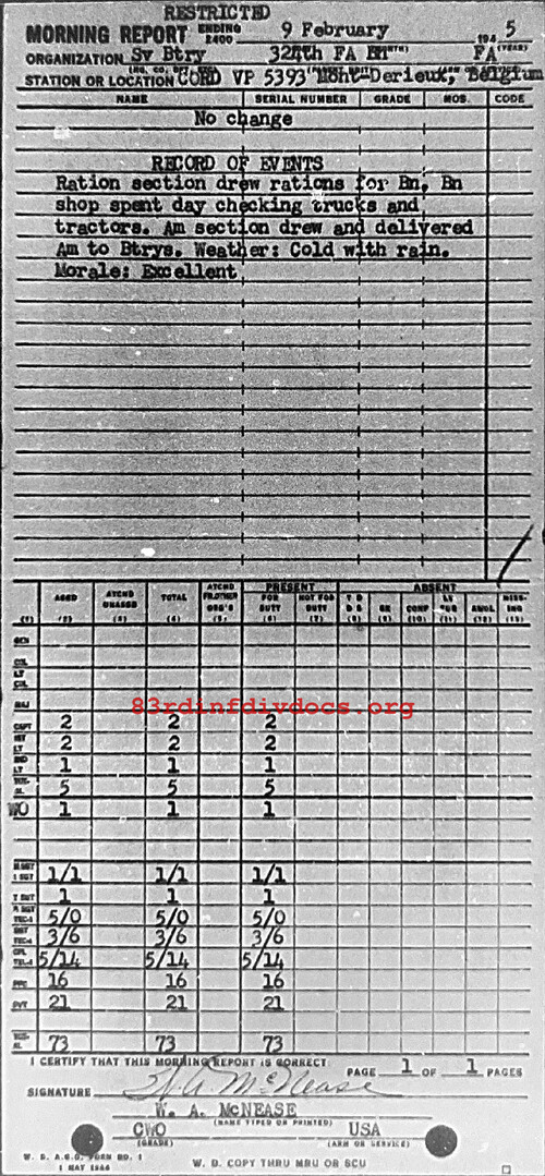 Morning report SERBTRY/324FA for February 9, 1945