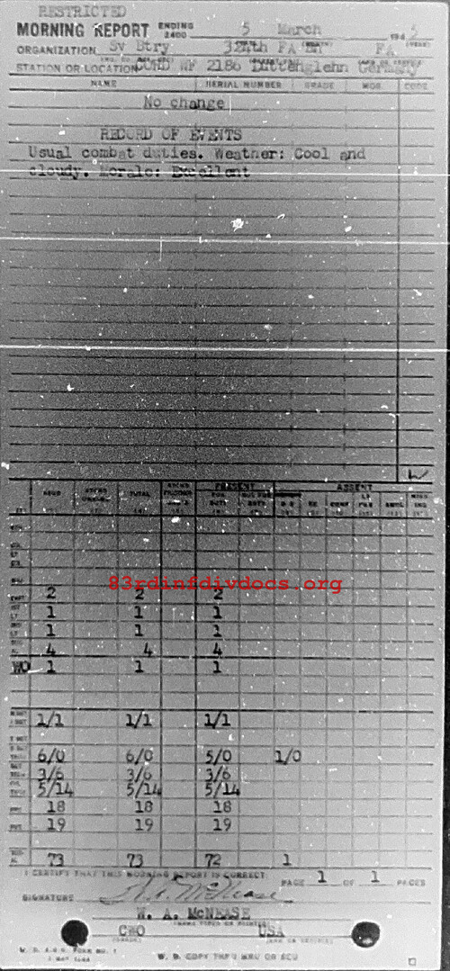 Usual combat duties. Weather: Cool and cloudy. Morale: Excellent.