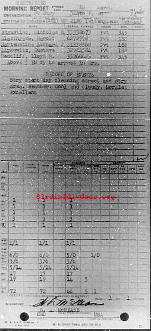 Morning report SERBTRY/324FA for March 10, 1945