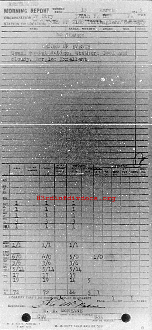 Usual combat duties. Weather: coold and cloudy. Morale: Excellent.