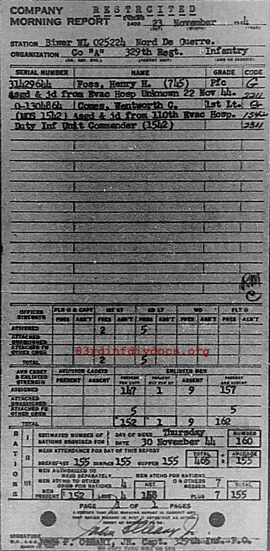 Morning report A/329 for November 23, 1944