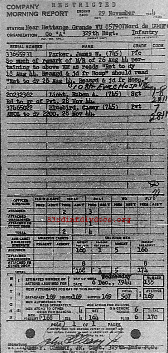 Morning report A/329 for November 29, 1944