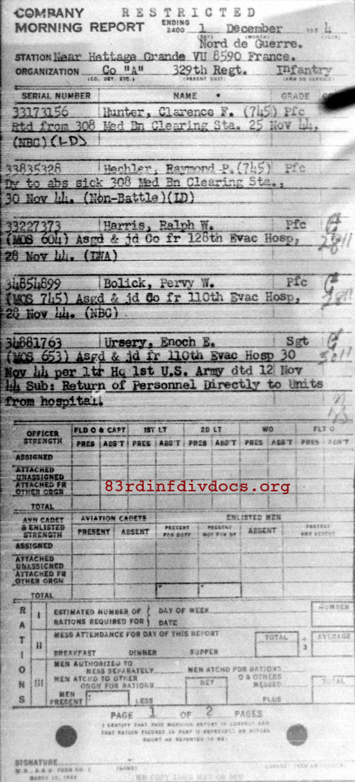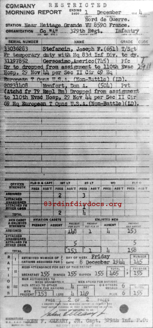 Morning report A/329 for December 1, 1944