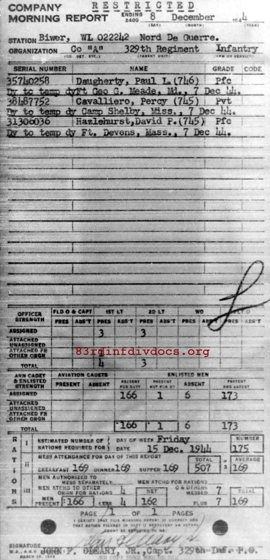 Morning report A/329 for December 8, 1944