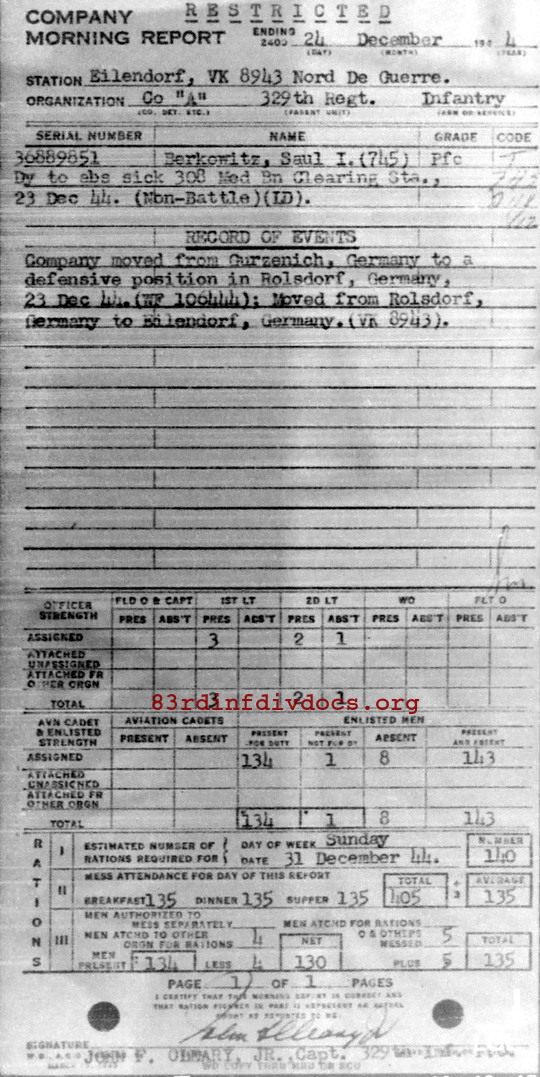 Company moved from Gurzenich, Germany to a defensive position in Rolsdorf, Germany, 23 Dec (WF 106444); moved from Rolsdorf, Germany to Eilendorf, Germany (VK 8943)