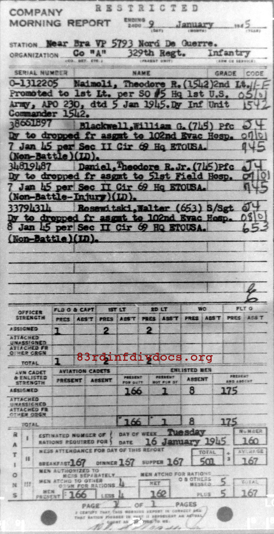 Morning report A/329 for January 9, 1945