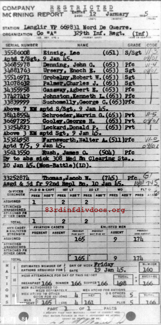 Morning report A/329 for January 12, 1945