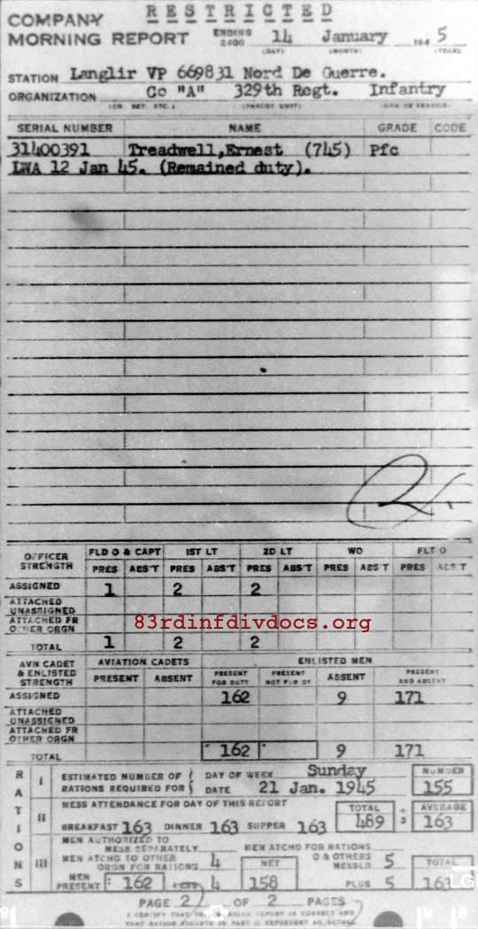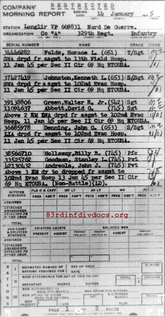 Morning report A/329 for January 14, 1945
