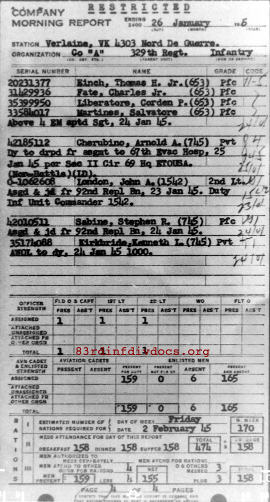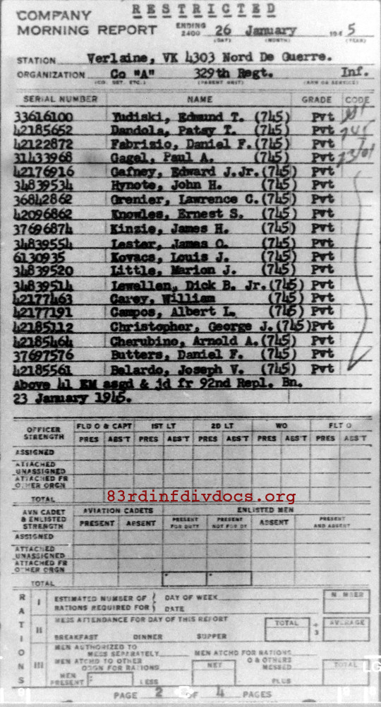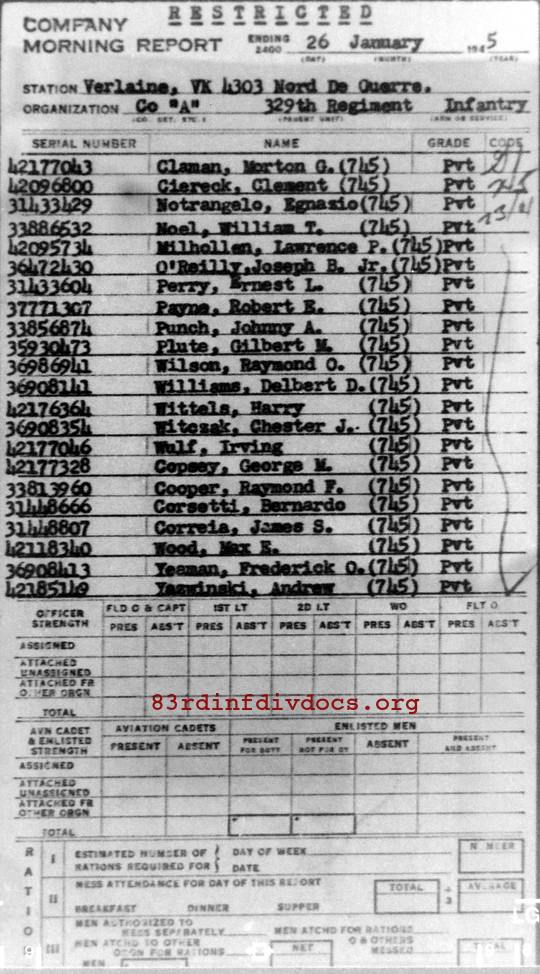 Morning report A/329 for January 26, 1945