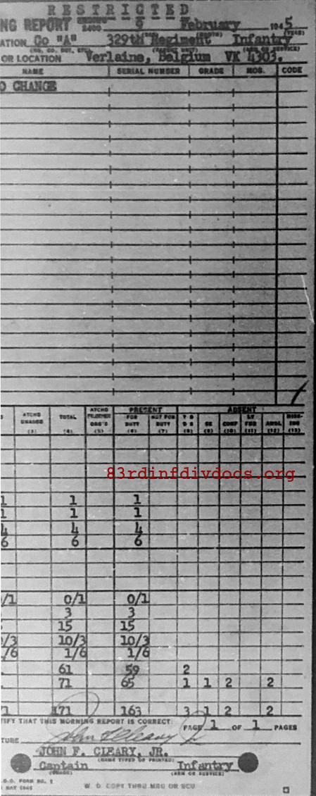 Morning report A/329 for February 9, 1945