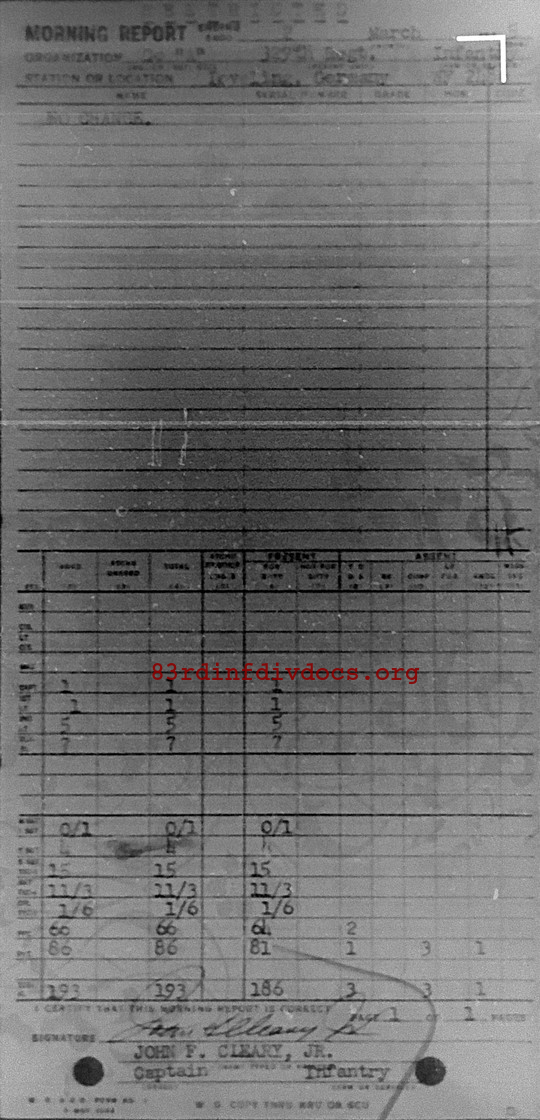 Morning report A/329 for March 2, 1945