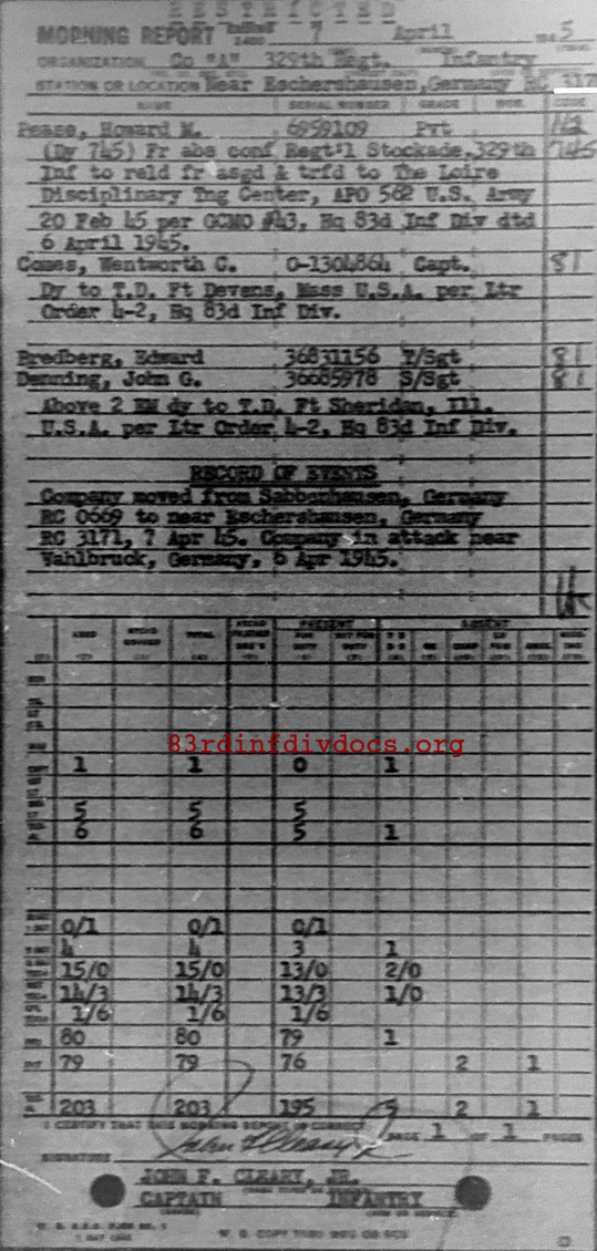 Morning report A/329 for April 7, 1945