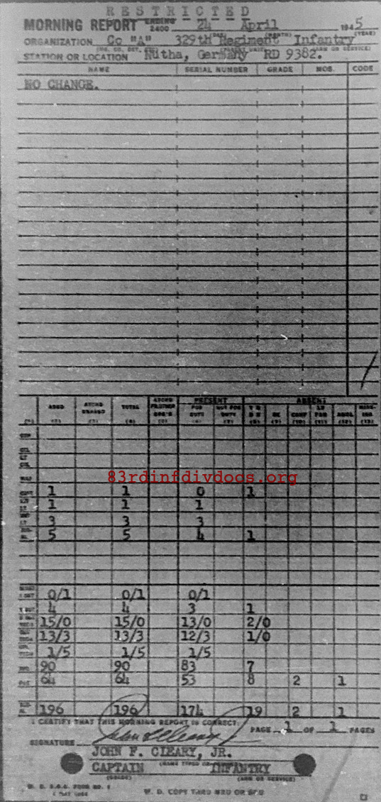 Morning report A/329 for April 24, 1945