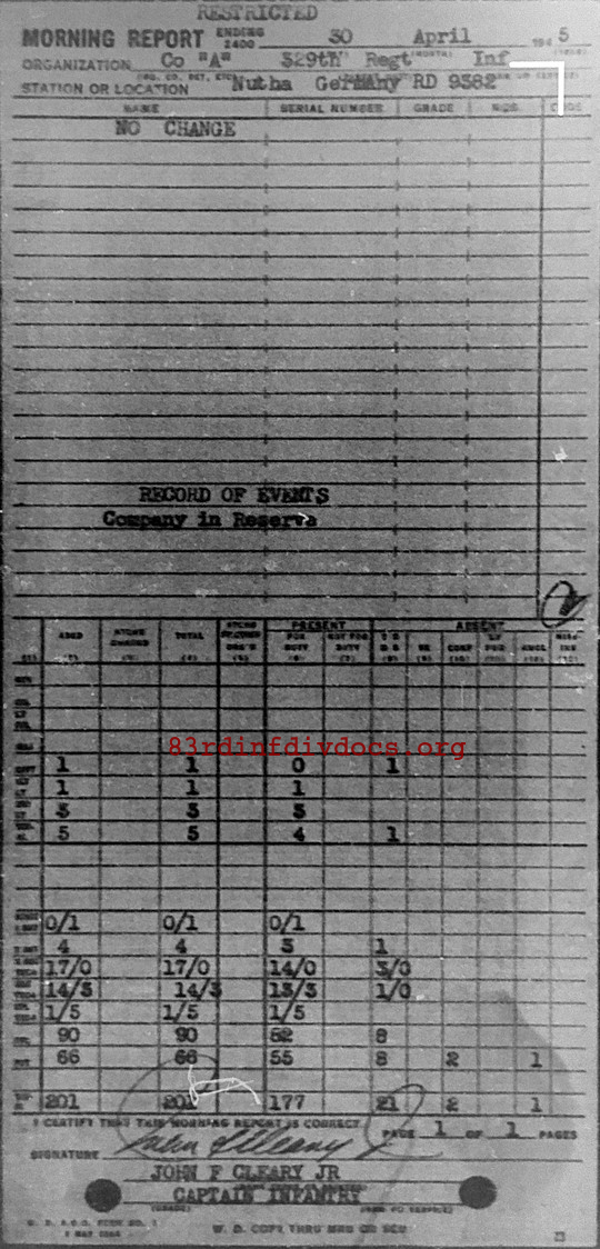 Morning report A/329 for April 30, 1945