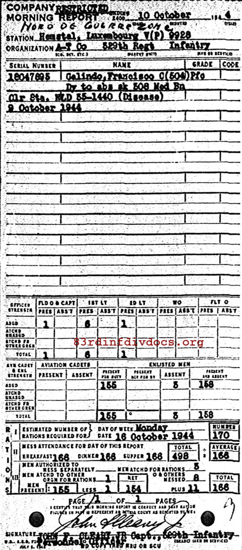 Morning report ATCO/329 for October 10, 1944