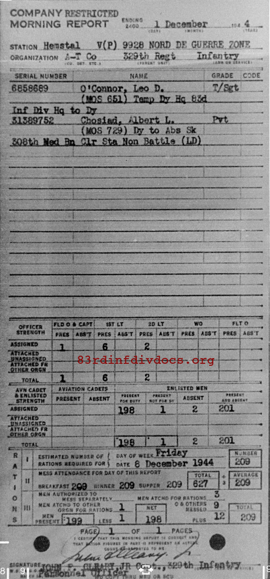 Morning report ATCO/329 for December 1, 1944