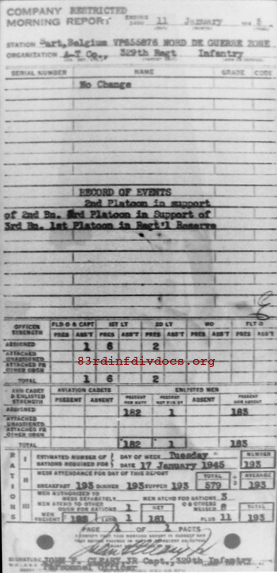 Morning report ATCO/329 for January 11, 1945