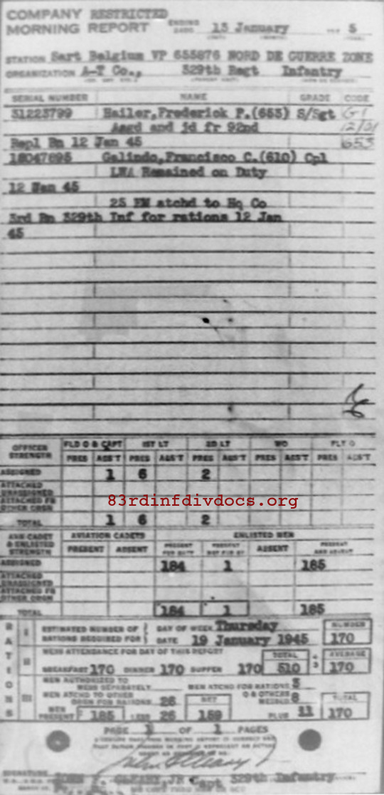 Morning report ATCO/329 for January 13, 1945