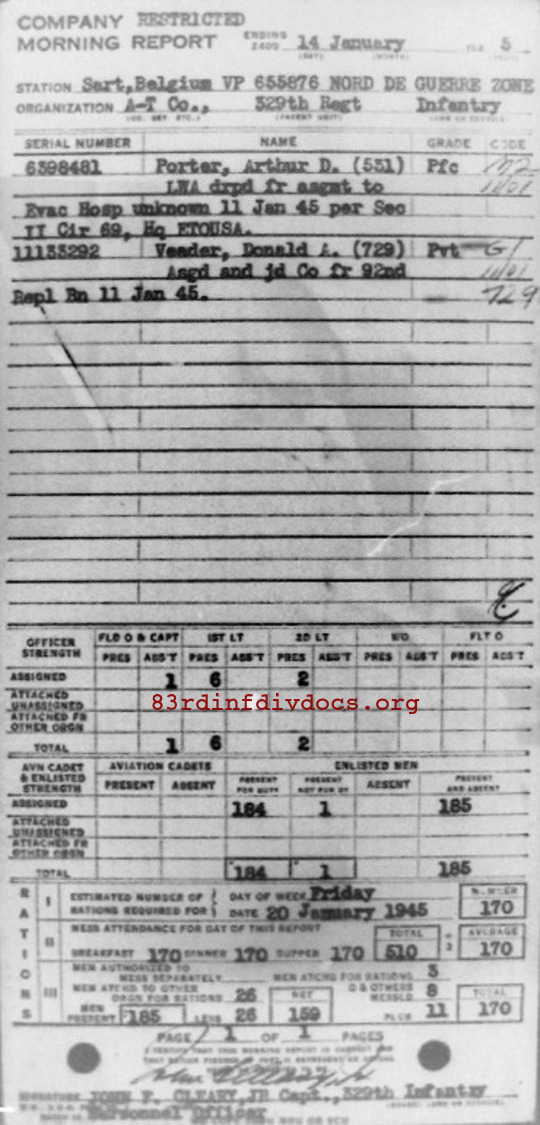 Morning report ATCO/329 for January 14, 1945