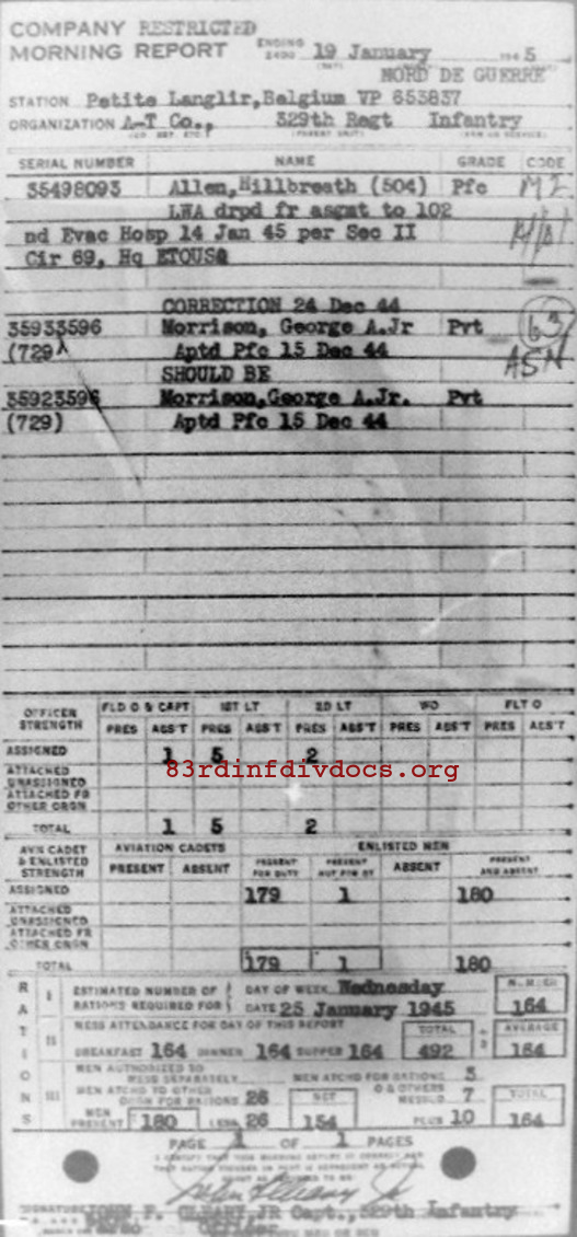 Morning report ATCO/329 for January 19, 1945