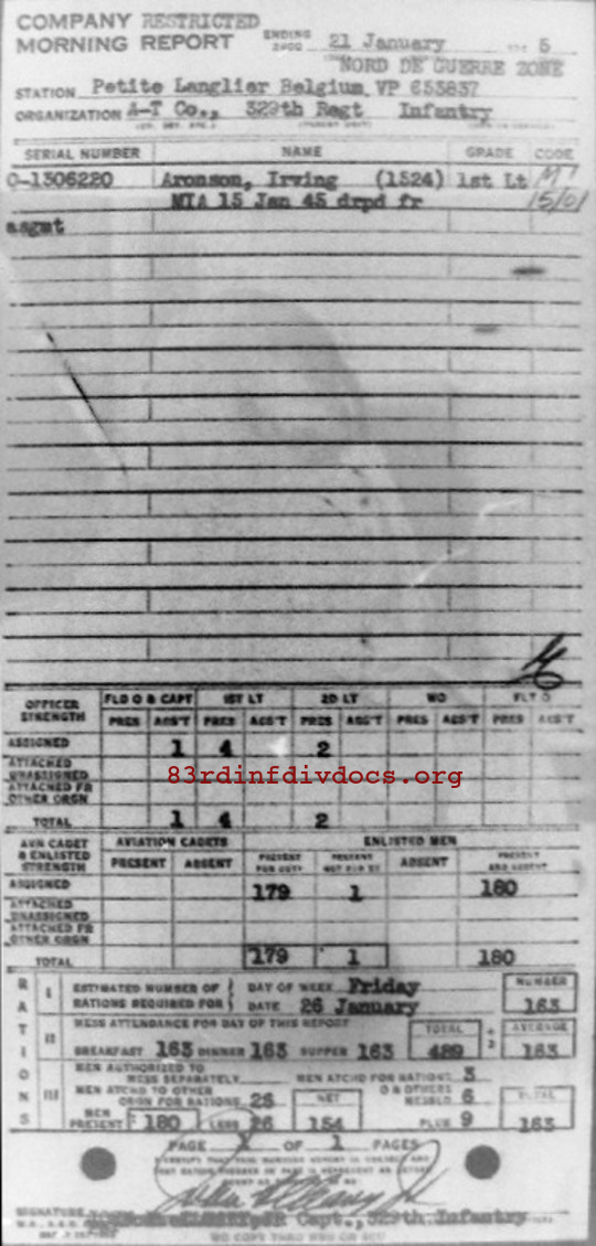 Morning report ATCO/329 for January 21, 1945