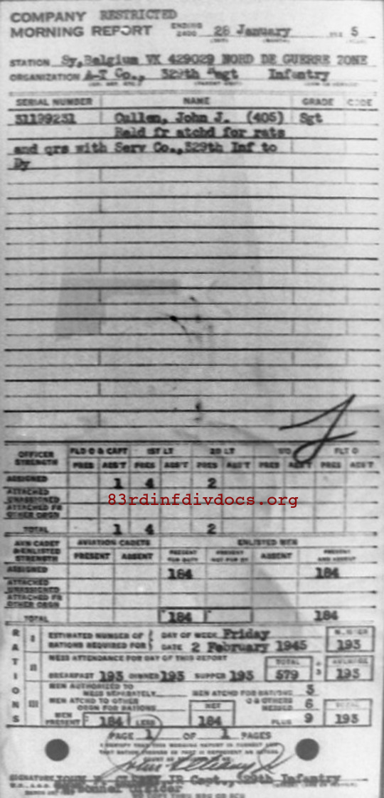 Morning report ATCO/329 for January 28, 1945