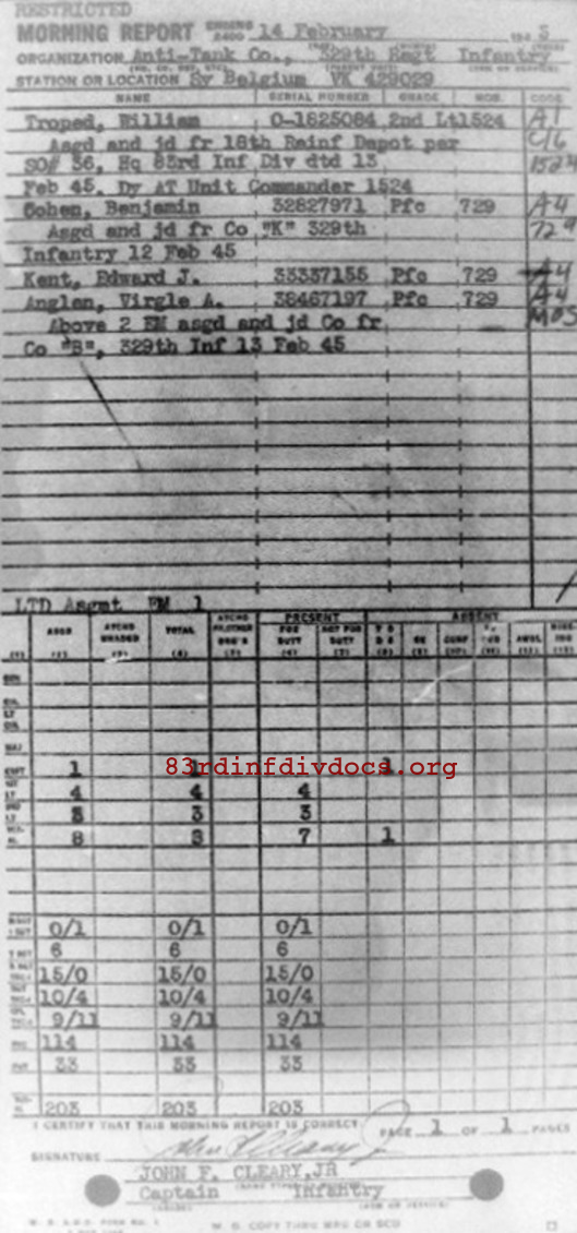 Morning report ATCO/329 for February 14, 1945