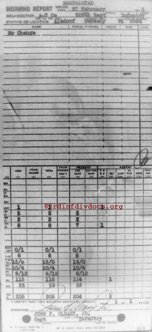 Morning report ATCO/329 for February 27, 1945