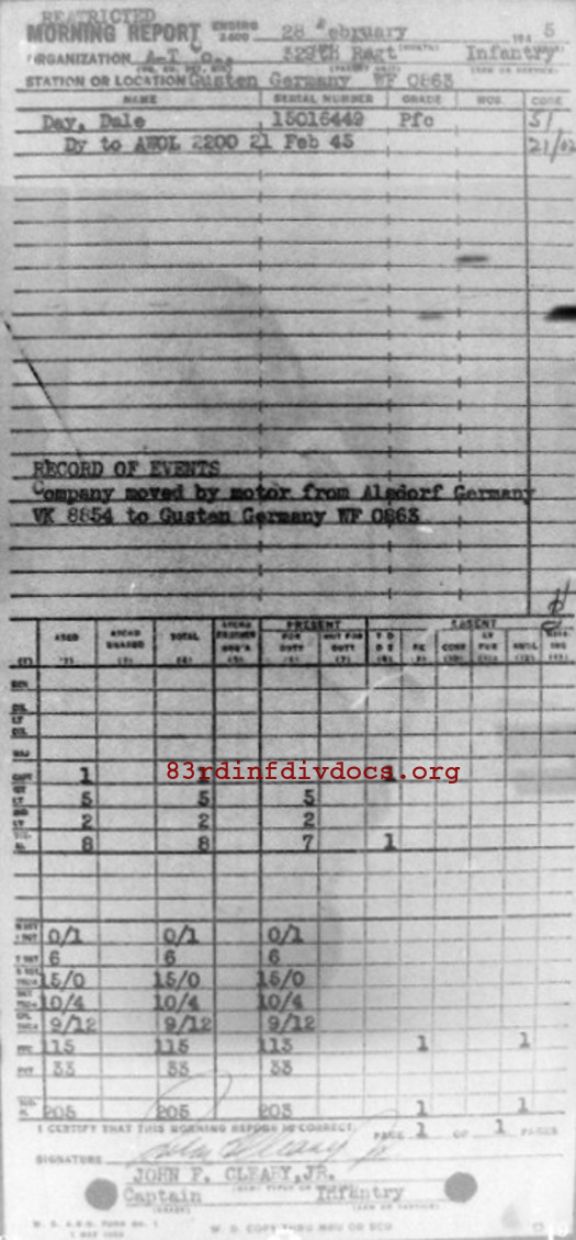 Morning report ATCO/329 for February 28, 1945