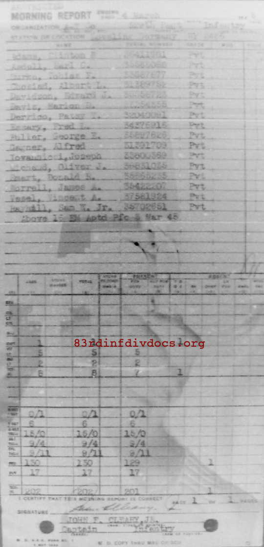 Morning report ATCO/329 for March 4, 1945