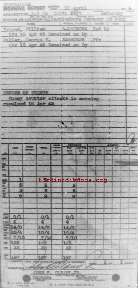 Enemy counter attacks in morning repulsed 16 Apr 45