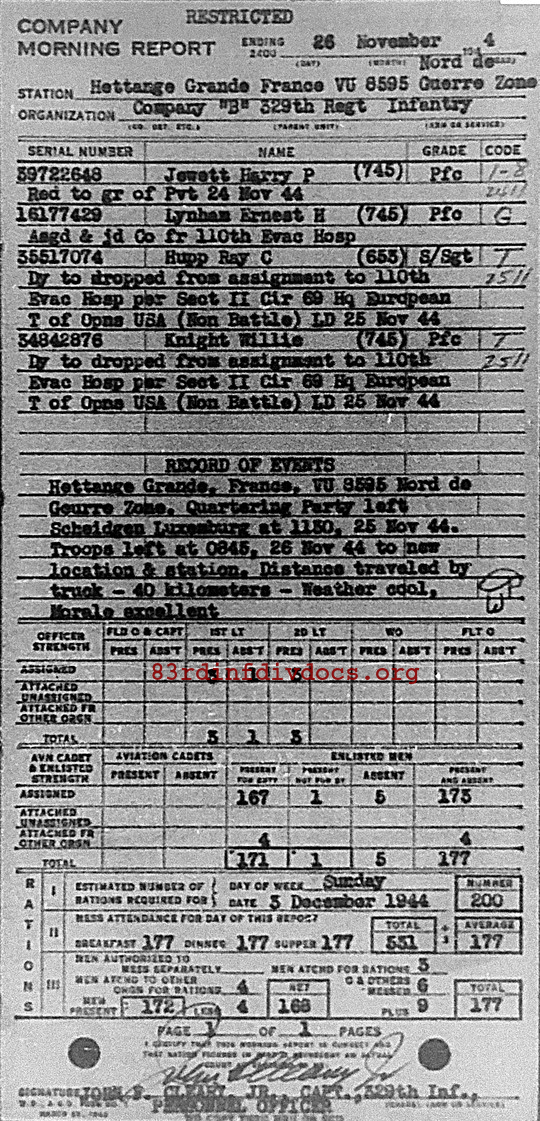 Morning report B/329 for November 26, 1944