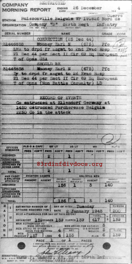 Co entrucked at Eilendorf, Germany at 1430 detrucked Porcheresse Belgium. 2230 Co in the attack.