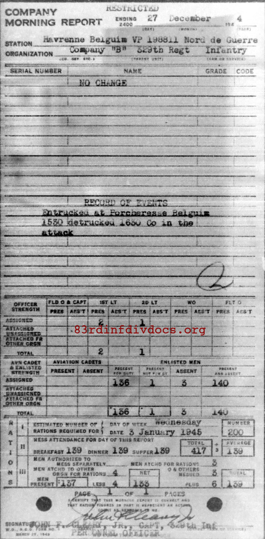 Entrucked at Porcheresse Belgium 1530 detrucked 1630. Co in the attack.