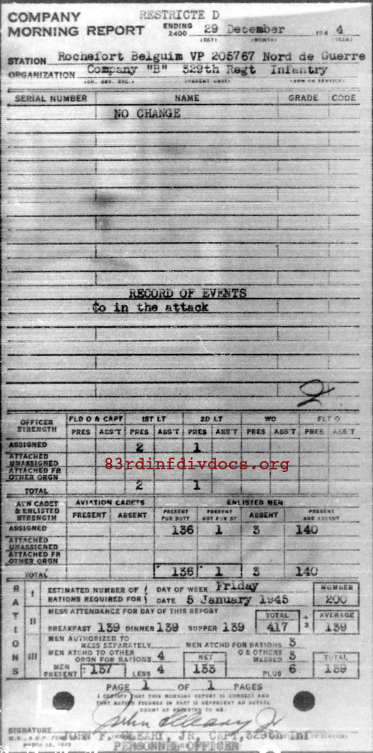 Morning report B/329 for December 29, 1944