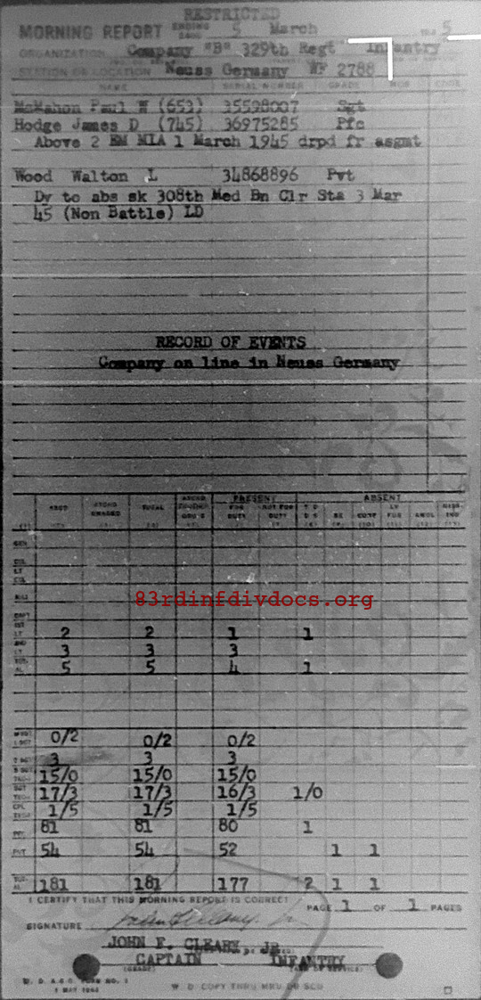 Morning report B/329 for March 5, 1945
