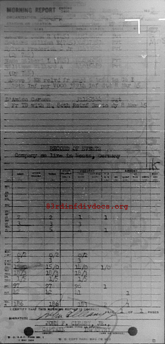 Morning report B/329 for March 10, 1945