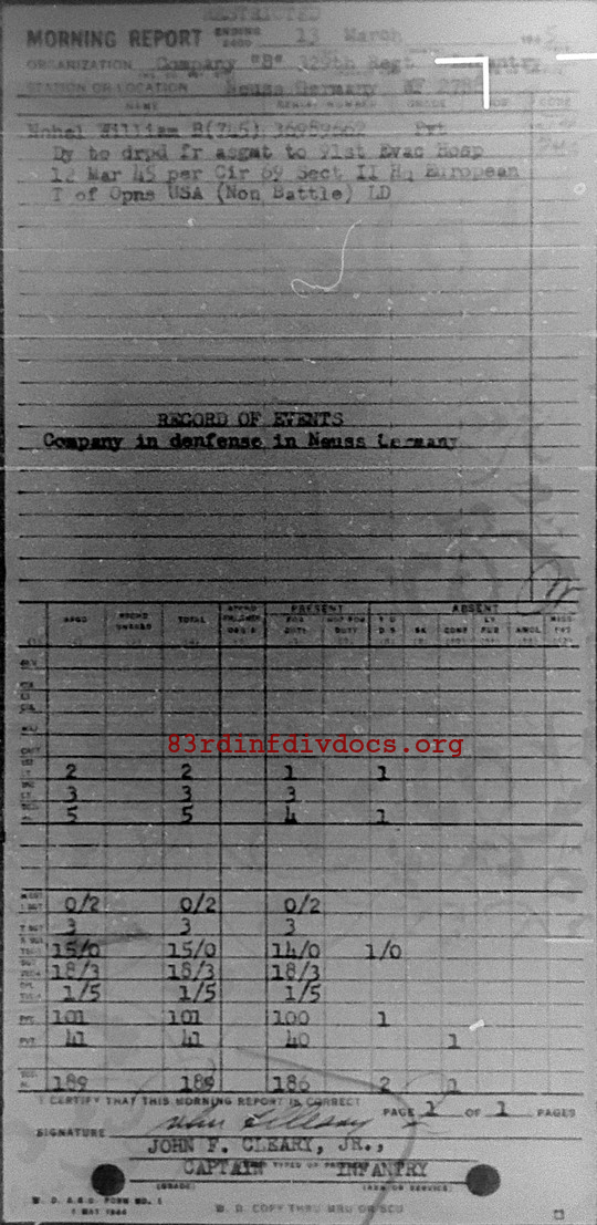 Morning report B/329 for March 13, 1945
