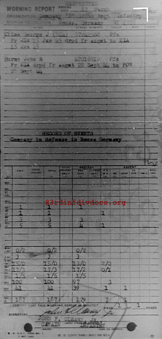 Morning report B/329 for March 17, 1945